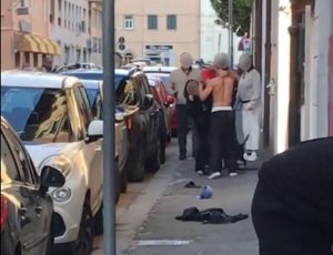 In attesa della polizia intervenuta immediatamente con più agenti, alcuni passanti sarebbero intervenuti per cercare di fermare i litiganti