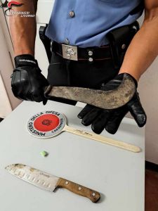 Alla vista dei carabinieri uno dei due si è rapidamente dileguato, mentre l’altro, verosimilmente per assicurare la fuga al compagno; si è frapposto ai militari brandendo contro di loro una roncola.