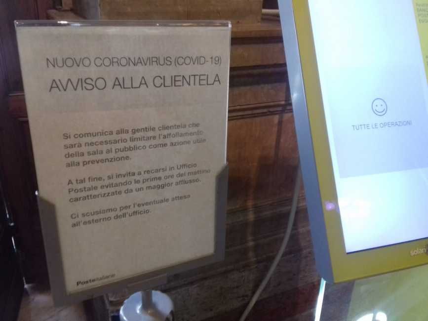 Alle poste sono apparsi sulle vetrate esterne e all’interno cartelli che invitano a mantenere la distanza di un metro per evitare possibili contagi