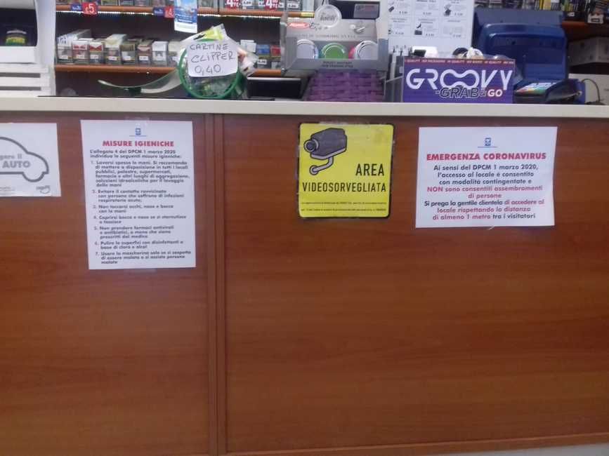 I tabaccai hanno esposto il medesimo cartello che troviamo alla posta sulle distanze e il cartello delle misure igieniche.