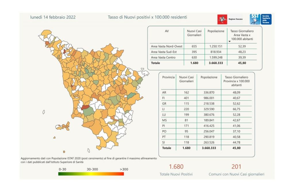 Covid, 1.680 positivi in Toscana, a Livorno e provincia 220 casi. I dati Comune per Comune