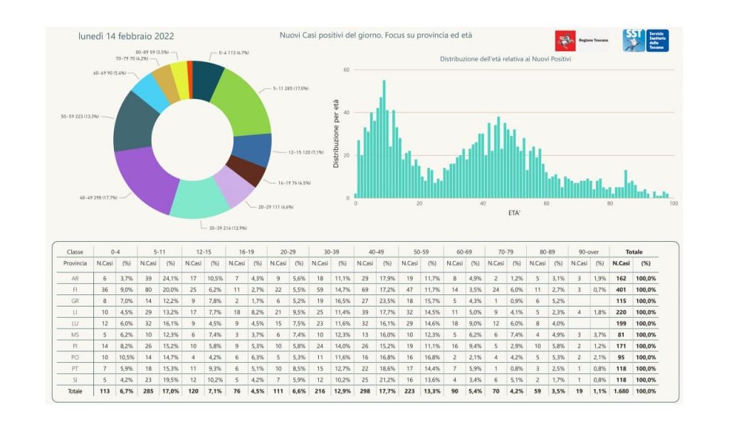 Il dettaglio della situazione giornaliera, i dati dei nuovi positivi per età e comune.