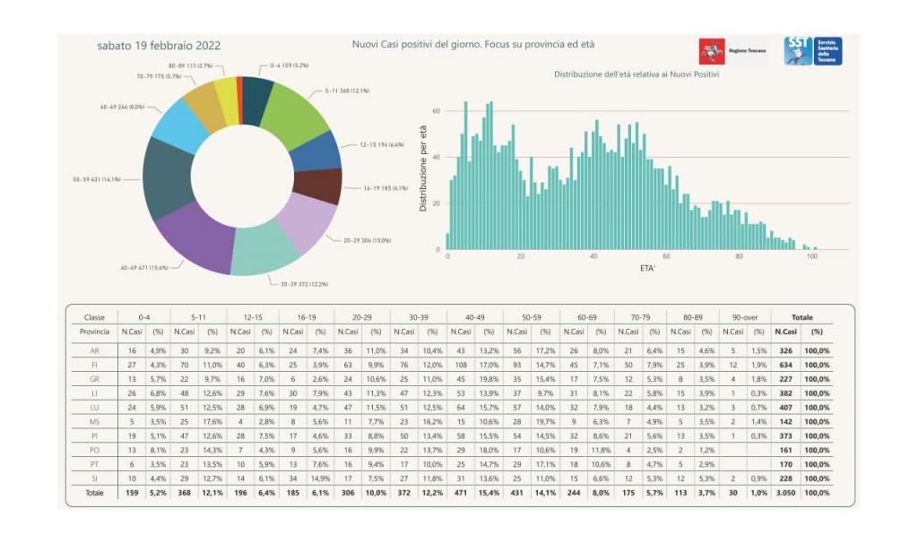 I nuovi casi registrati in Toscana sono 3.050 su 29.163 test di cui 8.647 tamponi molecolari e 20.516 test rapidi. Il tasso dei nuovi positivi è 10,46% (55,3% sulle prime diagnosi).
