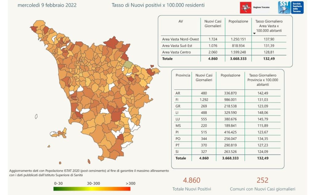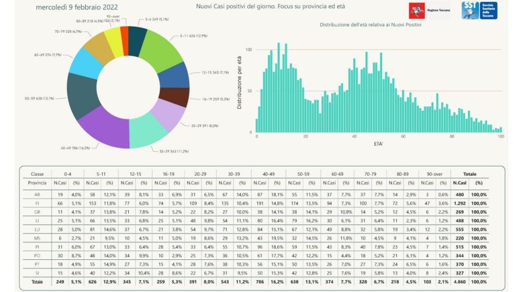 In Toscana sono 798.512 i casi di positività al Coronavirus, 4.860 in più rispetto a ieri (1.855 confermati con tampone molecolare e 3.005 da test rapido antigenico).
