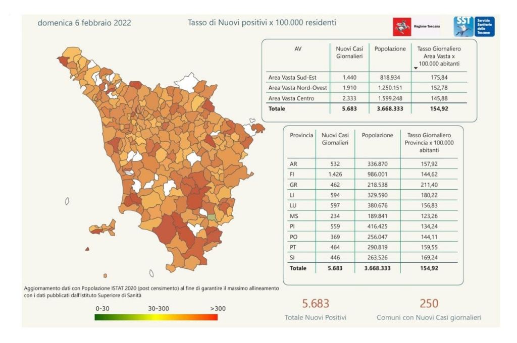 Covid, 5.683 positivi in Toscana, a Livorno e provincia 594 casi. I dati Comune per Comune