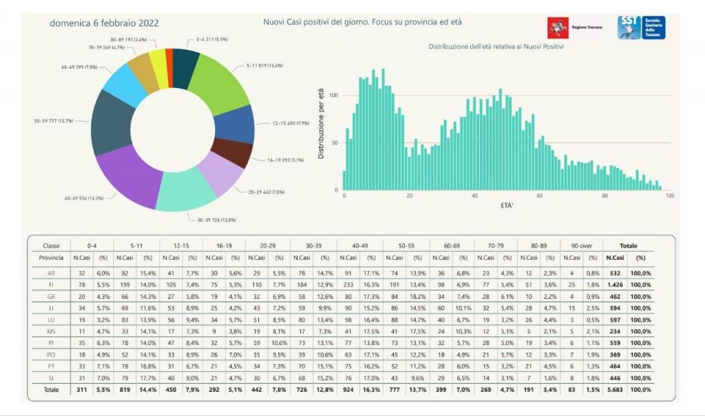 In Toscana sono 784.216 i casi di positività al Coronavirus, 5.683 in più rispetto a ieri (2.632 confermati con tampone molecolare e 3.051 da test rapido antigenico), lo 0,7% in più rispetto al totale del giorno precedente.
