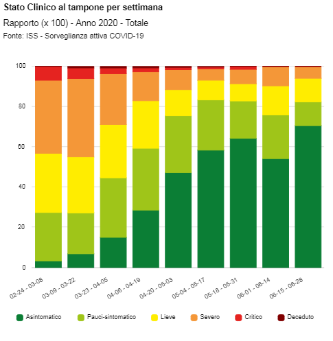 Rispetto alla gravità, progressivamente il miglioramento delle cure ha portato ad avere una percentuale più alta di guarigione.