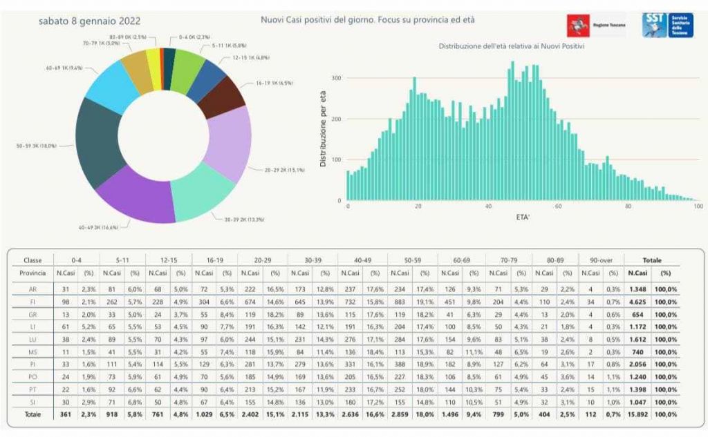 Covid Toscana, 8 gennaio 2022: 15892 positivi, A Livorno 715 casi e 457 in provincia