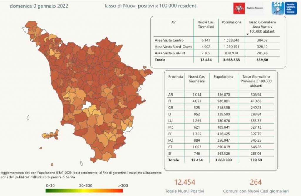 Covid Toscana 9 gennaio 2022: 12.454 positivi, nel livornese 952 casi: In provincia più positivi che in città