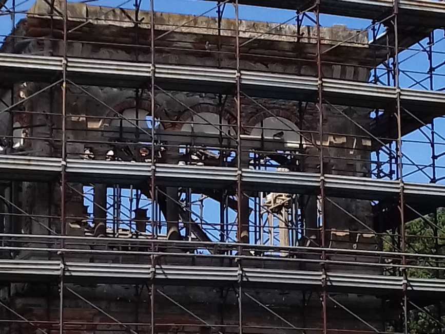 Il crollo ha interessato la parte alta della struttura, nelle specifico le pareti dei lati nord ed ovest.