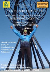 L’evento organizzato dal Gruppo di cittadinanza attiva Antignano-Banditella, Circolo Piero Gallinari, in collaborazione con Fiab si svolgerà giovedì prossimo 13 ottobre alle ore 17, presso il Circolo Gallinari in via della Salute, 13 ad Antignano.