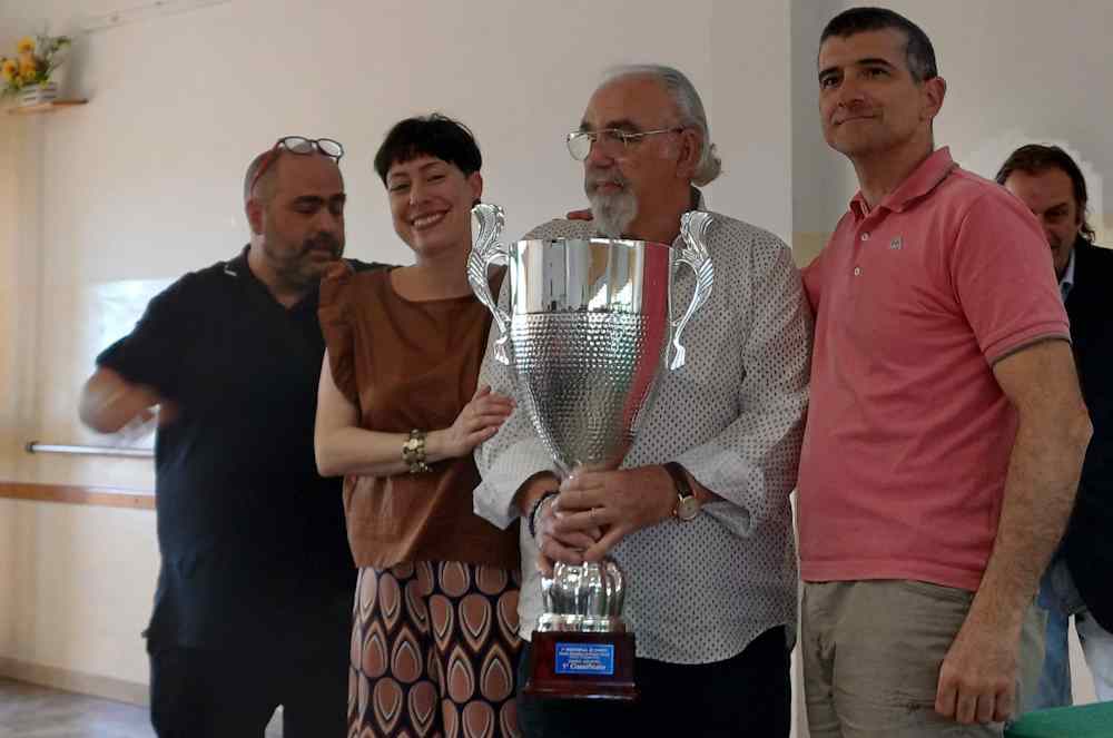 Tornando al torneo a loro intitolato, una quarantina di giocatori si sono presentati alla gara, malgrado lo sciopero dei treni. Suddivisi in vari gruppi, secondo la loro forza espressa dalla classifica Elo-Rubele, simile a quella che si usa, ad esempio, nel tennis. Nel primo gruppo la vittoria ha arriso al nostro concittadino Franco Manetti, un giocatore dalla lunghissima esperienza. Pur non avendo mai vinto il titolo italiano individuale assoluto, sfiorato nel 1988, è colui che ha vinto il maggior numero di campionati assoluti a squadre, ben 15. Il primo di questi addirittura nel 1964, esattamente 60 anni fa, appena sedicenne. A dimostrazione che per giocare a dama l’età ha un valore poco significativo. Non è raro vedere affrontarsi giocatori di pari livello tecnico, uno non ancora maggiorenne e l’altro ultraottantenne.