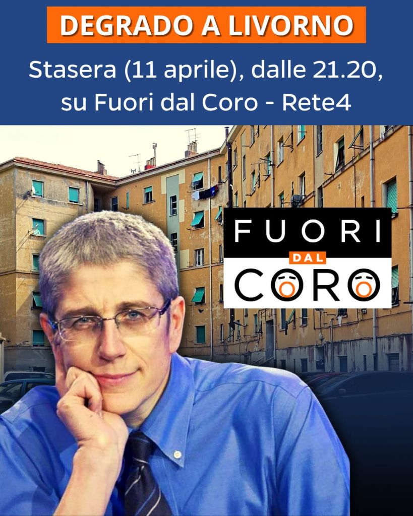 A Fuori dal Coro va in onda questa sera un servizio su degrado e case popolari di Livorno. Interverrà il consigliere comunale Alessandro Perini (FdI) e ci sarà anche un’intervista alla mamma di Denny Magina