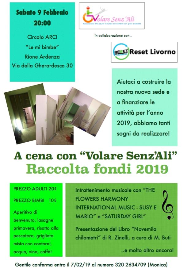 Come prima iniziativa ha organizzato, Sabato 9 febbraio alle 20.00, insieme al Circolo Arci “Le mi Bimbe” di Ardenza in Via Della Gherardesca, 30 una cena di raccolta fondi.