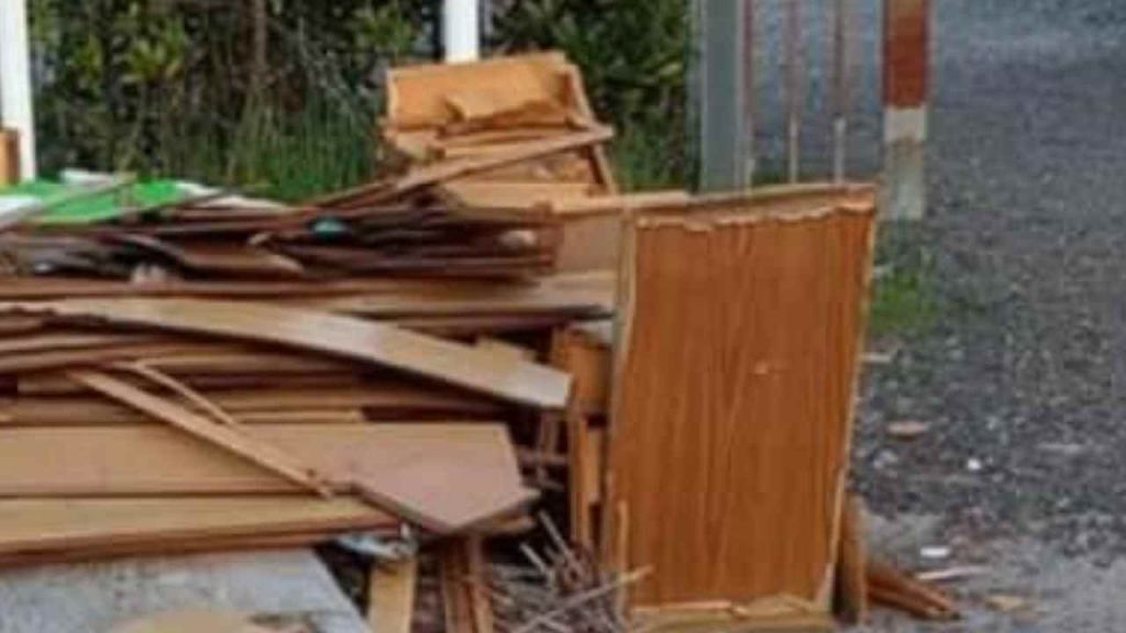 Discarica di legname all’ingresso della Casa della Salute