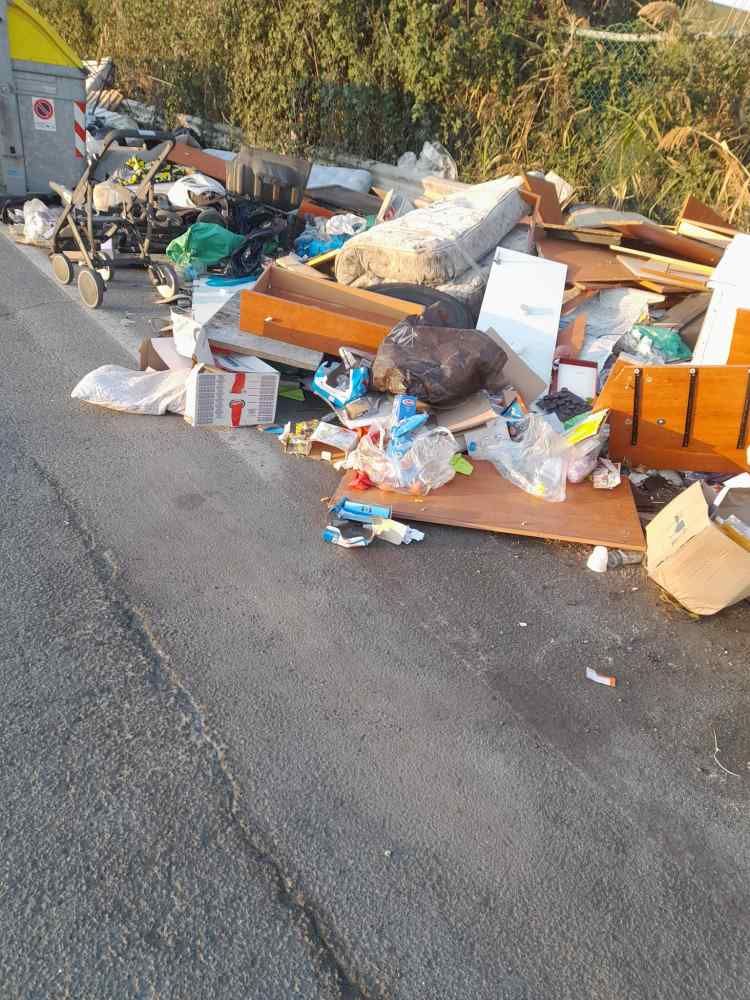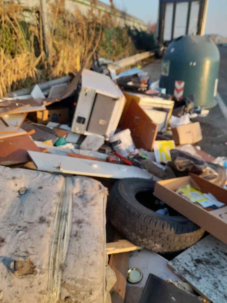 Ci sono: frigorifero, gomme, mobili, plastica, materassi, spazzatura varia, un sedile di auto ed altri pezzi di veicoli