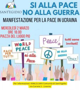 Saremo insieme con l’unica rappresentanza della pace, dicono dalla Comunità di Sant’Egidio di Livorno.