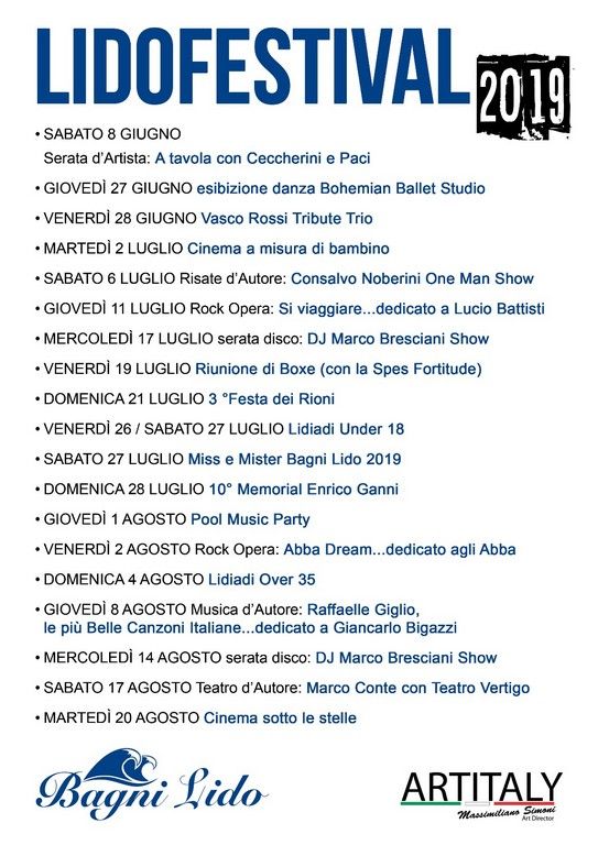 Per il 2019 propongono un vero e proprio Festival dello spettacolo e dell’intrattenimento, il LIDOFESTIVAL.