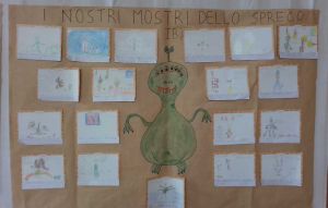 Quest’anno le classi si sono cimentate in un’ulteriore attività: disegnare un nuovo mostro dello spreco e immaginare come sconfiggerlo, mentre per il contest rivolto alle famiglie i bambini dovevano disegnare sulla cartolina un nuovo eroe della squadra Cacciamostri.