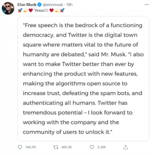 RUBRICHE, TELEFONIA – 27 aprile 2022 – Elon Musk acquista Twitter:  Che cosa cambierà adesso?