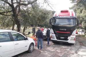 Enorme camion fermo a Limoncino: ci sono le auto parcheggiate, non passa, torna indietro