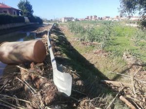 Detriti in strada, nei campi e nelle vasche di contenimento, tra tutto quello che si trova oltre ai rami, tanta plastica e addirittura il telaio cannibalizzato di uno scooter (presumibilmente rubato e gettato nel rio chi sa dove)