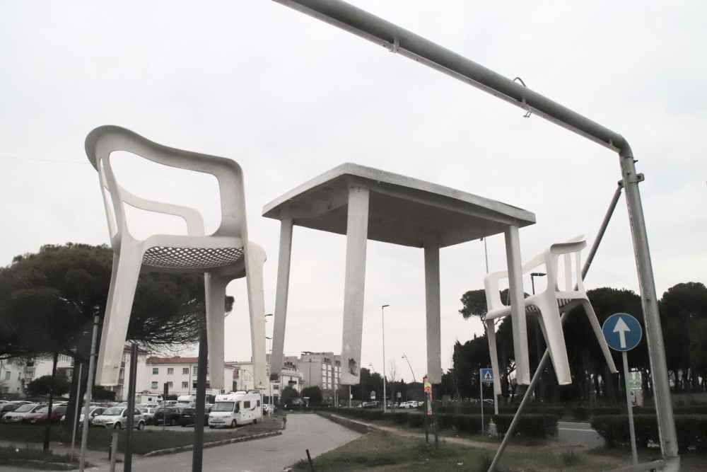 Installazione artistica al posto della pubblicità, è quello che si può notare in viale della Libertà all’ingresso del parcheggio pubblico