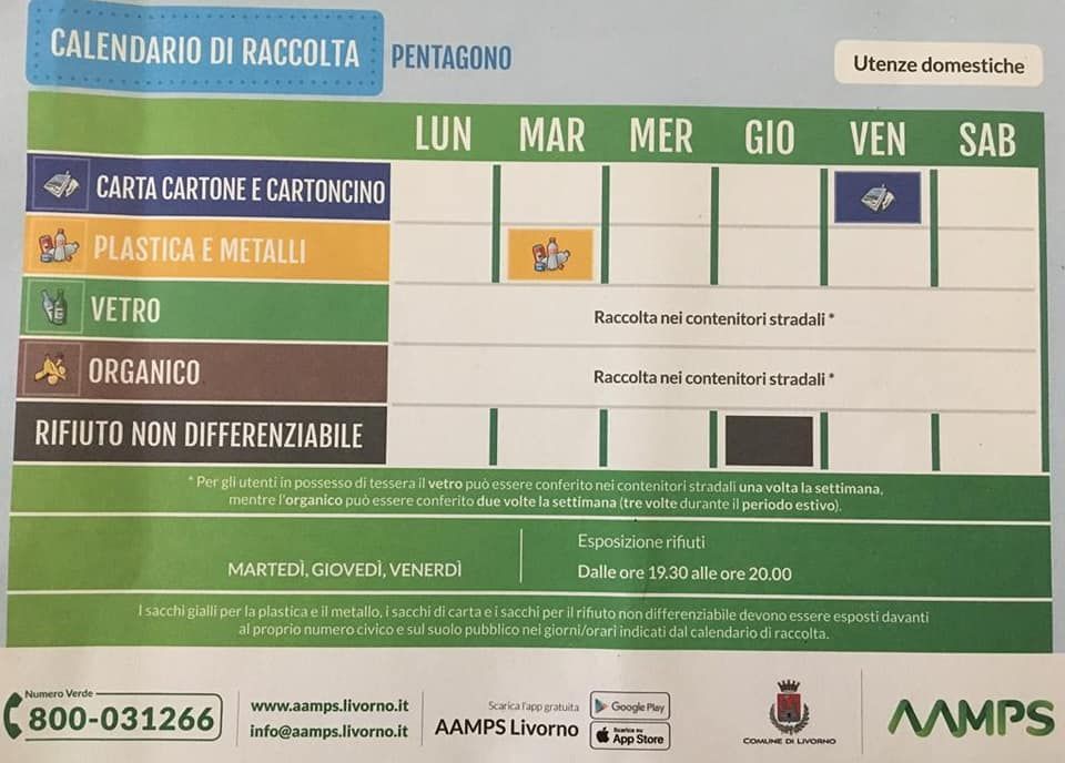 Ma a quanto pare siamo di fronte a una cosa seria. I residenti nella zona del Pentagono del Buontalenti avranno 30 minuti di tempo, dalle 19.30 alle 20, per esporre il multimateriale, la carta e l’indifferenziata. Se la “corsa” contro il tempo non riuscirà dovranno attendere la settimana successiva, oppure potranno recarsi ai centri raccolta. Il conferimento nei cassonetti a tessera, per vetro e organico, verrà invece contingentato rispettivamente una volta e due volte a settimana.