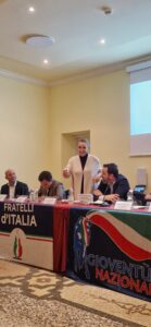 A discutere di questi temi, sullo stimolo dei giovani di Fratelli d’Italia che hanno posto le domande introduttive c’erano l’europarlamentare Elena Donazzan, Alessandro Tomasi (sindaco di Pistoia e candidato in pectore per la presidenza della Regione), il prof. Massimo Miscusi, il prof. Nicola Castellano e Gabriele Sgueglia, presidente di Gioventù Nazionale Toscana. Presenti anche il senatore Lisei e l’on. Michelotti. A moderare l’incontro il Responsabile Giovani Eletti e presidente provinciale GN Alessandro Palumbo. E’ intervenuto per un saluto anche il Segretario dell’Autorità di sistema portuale Matteo Paroli.