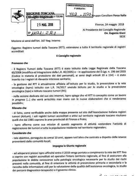 – dal 2008, anno della sua istituzione, il Registro Tumori della Toscana (RTT) non è mai stato esteso a tutto il territorio regionale e anche il territorio provinciale di Livorno risulta sprovvisto di registro accreditato;