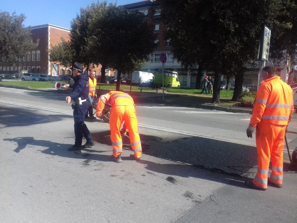 Fotonotizia: tappate le buche stradali in piazza del Pamiglione