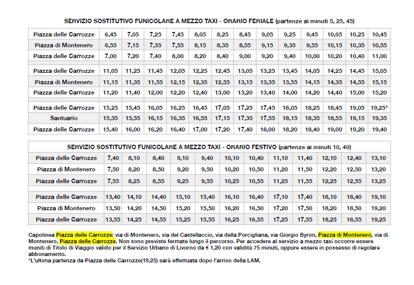 Funicolare di Montenero, servizio sostitutivo con taxi ogni 20 minuti . Tutti gli orari