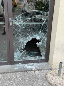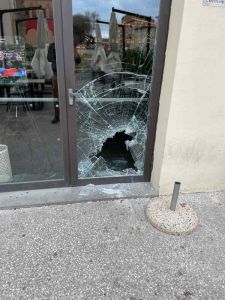 L’allarme di Bottini Fusion è suonato alle 06.12 di questa mattina. I malviventi hanno utilizzato la base di pietra di un ombrellone per sfondare la vetrata della porta di ingresso.
