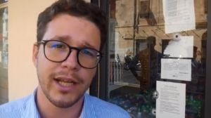 Livorno 22 luglio 2020 – Sicurezza, – Lorenzo Gasperini coordinatore provinciale Livorno Giovani Lega intervistato in via Garibaldi, sul luogo dove hanno sparato contro un esercizio commerciale: