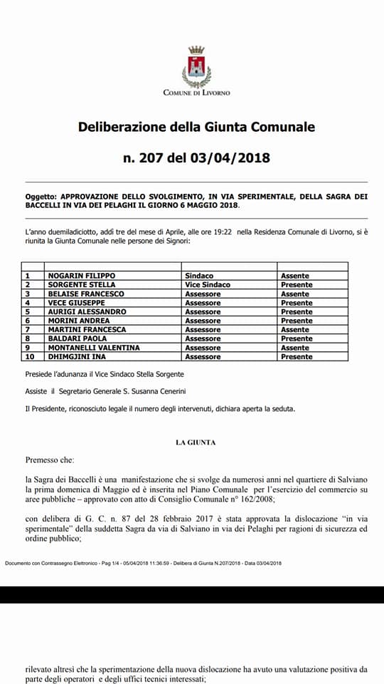 Questo evento così antico e popolare non merita, in nessuna maniera, di essere associato, anche solo per ipotesi, al concetto di soppressione. Solo chi non conosce e non ama Livorno può ipotizzare questo scenario. Spero che i rappresentanti della Giunta presenti oggi alla Festa si siano resi conto di come sia, a mio avviso, irrispettoso parlare in un atto del nostro Comune di eventuale soppressione dell’evento. Irrispettoso del lavoro e del sacrificio degli organizzatori, irrispettoso del sentimento dei livornesi nei confronti di questa Festa ed irrispettoso anche della Storia di questa antichissima parte della città. Ma passerà anche questa. Passerà ma sarà importante ricordarsi di tutto. Ed io mi prendo volentieri questo impegno. #ioricordo #ionondimentico Avanti così!”