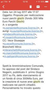 Ed ecco gli screenshot dell’email inviata da Matteo Baldini inviata in data 24 luglio 2017. (Clicca sulla foto per ingrandire)