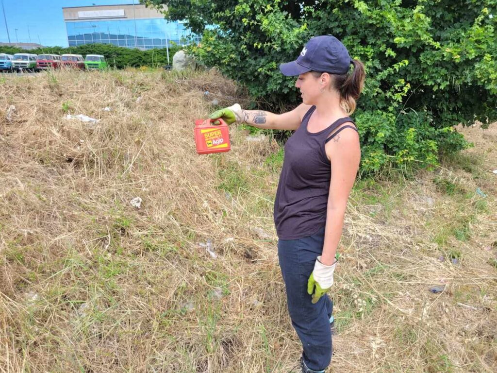 Livorno 3 giugno 2024 – Giulia e Mister Green puliscono il prato tra via dei Ramai e la Variante Aurelia, raccolti 38 chili di immondizia