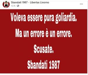 Intanto sulla pagina Facebook degli Sbandati 1987 è apparso un post di scuse con la scritta:
