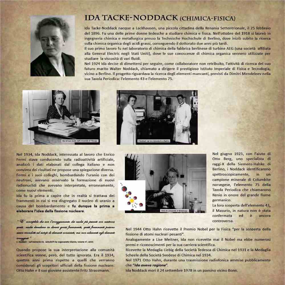 Ida Tacke-Noddack (1896-1978), chimica e fisica tedesca, fu la prima a ipotizzare l’esistenza del fenomeno della fissione nucleare nel 1934, dimostrato pochi anni dopo da colleghe e colleghi tedeschi.