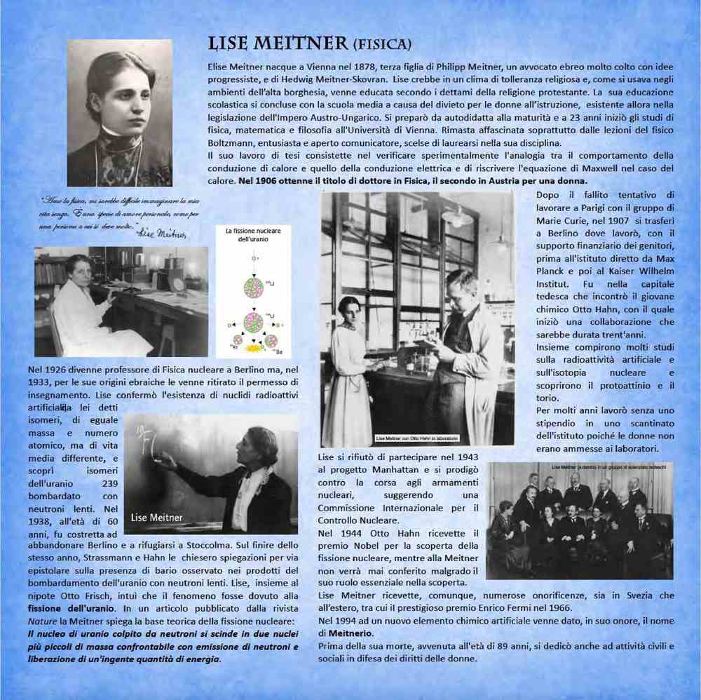 Lise Meitner (1878-1968), fisica austriaca, contribuì in modo deciso alla scoperta della fissione nucleare.