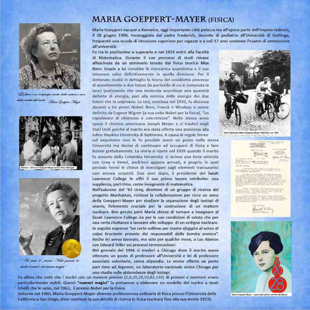 Marie Goeppert-Mayer (1906-1972), fisica tedesca, ottenne il premio Nobel per la fisica nel 1963 per la formulazione del modello nucleare a shell.