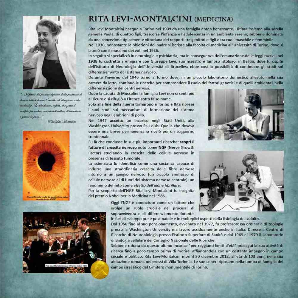 Rita Levi-Montalcini (1909-2012), neurologa italiana, scoprì il nerve growth factor (NGF), una struttura proteica che contribuisce alla crescita e alla proliferazione dei neuroni.