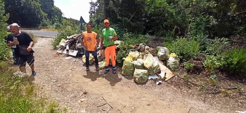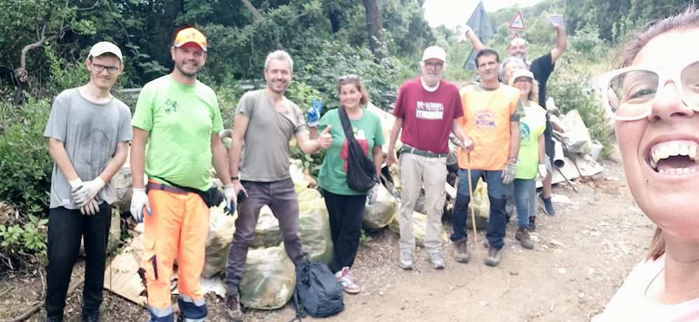 I 10 eroi dell’ambiente hanno percorso avanti e indietro centinaia di volte la strada sterrata che dal bosco portava alla SP8. In su e in giù a raccogliere ogni singolo materiale abbandonato raccolto per portarlo al punto di raccolta. Hanno in pratica battuto la zona palmo a palmo per restituirla al suo splendore naturale.