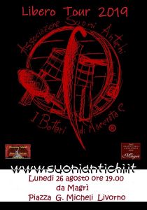 I filmati dei concerti, sono visibili su You Tube, digitando i Suoni Antichi. sul sito www.isuoniantichi.it troverete tutte le info del gruppo. Sul sito web www.santantuono.it si trovano informazioni sulla tradizione della festa e le sfilate dei Carri. Dopo l’esibizione in Piazza a Cascia (PI) del giorno 25 agosto, questa di Livorno è la tappa n. 34 del Libero Tour 2019.
