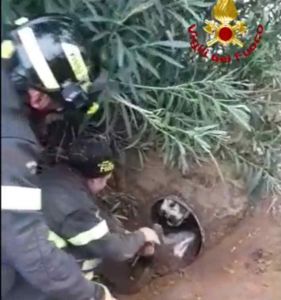 Hanno tratto in salvo un cane di grossa taglia rimasto bloccato all’interno di un canale di scolo delle acque meteoriche.
