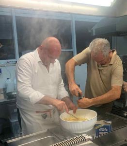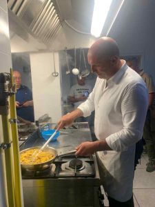 Per l’occasione ci sarà uno chef d’eccezione, il Questore di Livorno Dr. Roberto Massucci, che sarà aiutato in cucina da alcuni suoi collaboratori e dai ragazzi ospiti delle strutture di accoglienza Caritas. In questi giorni il Questore con i suoi collaboratori ha messo a disposizione il suo tempo libero per istruire i ragazzi, in vista della cena di domenica prossima, provando a cucinare insieme a loro i piatti previsti nel menù, nella cucina Caritas in via Donnini(come si vede nelle foto allegate).
