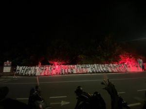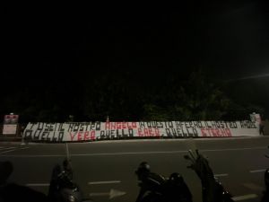 Dopo la partita, gli amici hanno esposto uno striscione sotto la targa che ricorda il luogo dell’incidente sul viale del Risorgimento di fronte ai Salesiani.