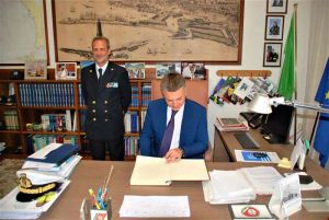 Nel corso della mattinata, in occasione della sua partecipazione al 2° Convegno RLS di Sito Porti Italiani che si è tenuto nella Fortezza Vecchia, il Viceministro delle Infrastrutture e dei Trasporti, on. Edoardo Rixi, ha fatto visita alla Direzione Marittima di Livorno.