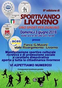 L’ M.S.P. Italia Coordinamento Comitati Terre Etrusche Livorno, Ente di Promozione Sportiva riconosciuto dal CONI, organizza per i giorni 2 e 3 giugno 2018 la 2^ edizione della manifestazione polisportiva ‘SPORTIVANDO LIVORNO’ patrocinata dal Comune di Livorno e dal CONI REGIONALE che l’ha inserita nella Giornata Nazionale dello Sport.