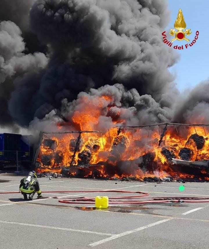Poco prima delle ore 14. 00 sono andati in fiamme diversi pianali di mezzi pesanti carichi di cellulosa, l’incendio ha coinvolto anche un adiacente campo. Sul posto due squadre dei vigili del fuoco da Livorno con autobotte al seguito, oltre a personale dal Comando di Pisa e dei volontari della sede del Crocino. Il personale di terra era supportato dall’alto dall’elicottero munito di secchio per il rilascio dell’acqua giunto della sede di Cecina.